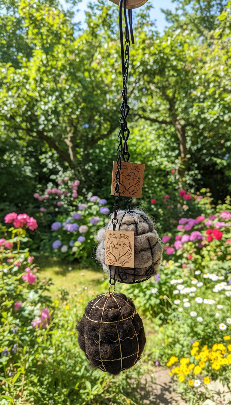 - Metallkugel mit Alpaka-Rohwolle